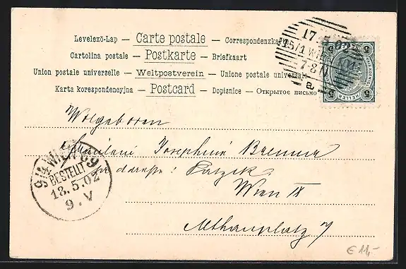 alte Ansichtskarte, gelaufen 1902, Stempelspur, guter Zustand