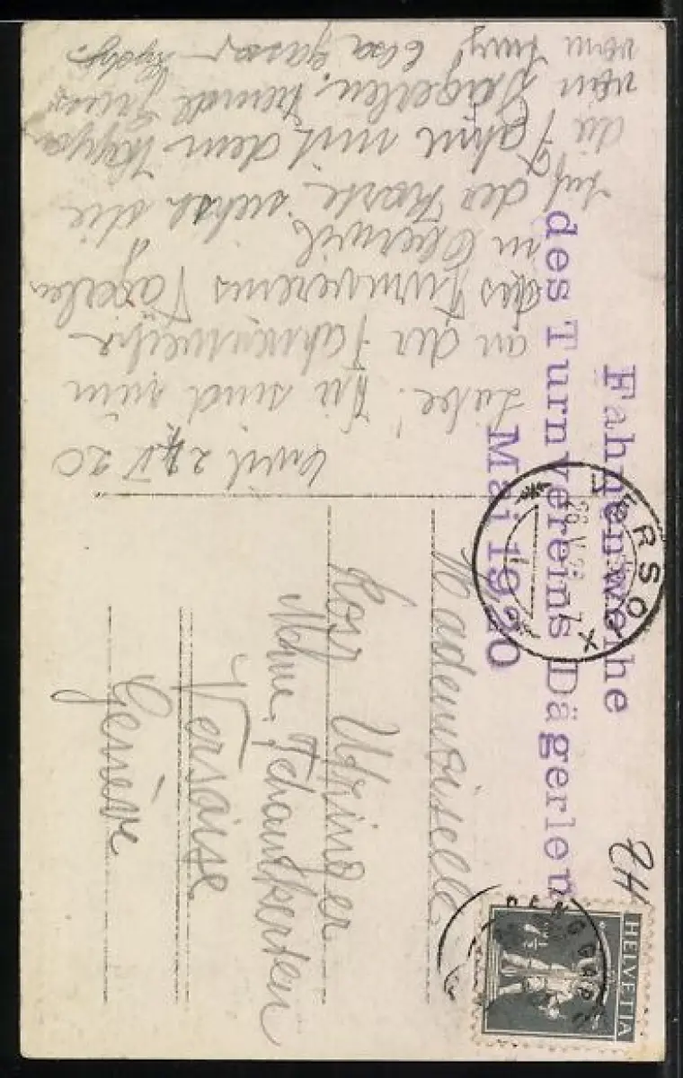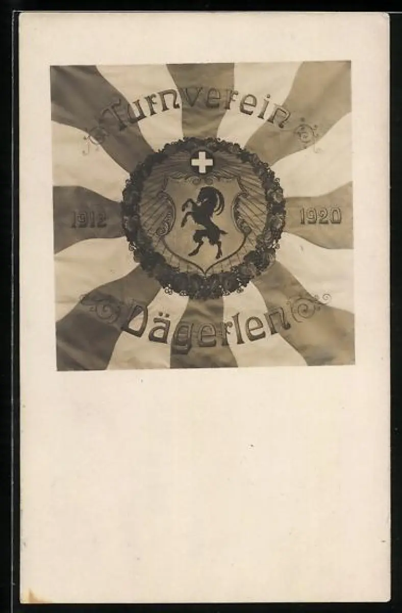 AK Dägerlen, Turnverein Dägerlen, Fahnenemblem mit Wappen, Fahnenweihe 1920