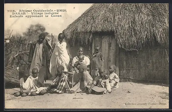 AK Dakar, Village indigéne, Enfants apprenant le Coran