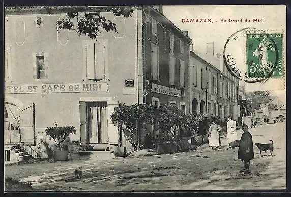 AK Damazan, Boulevard du Midi, Hotel et Cafe du Midi