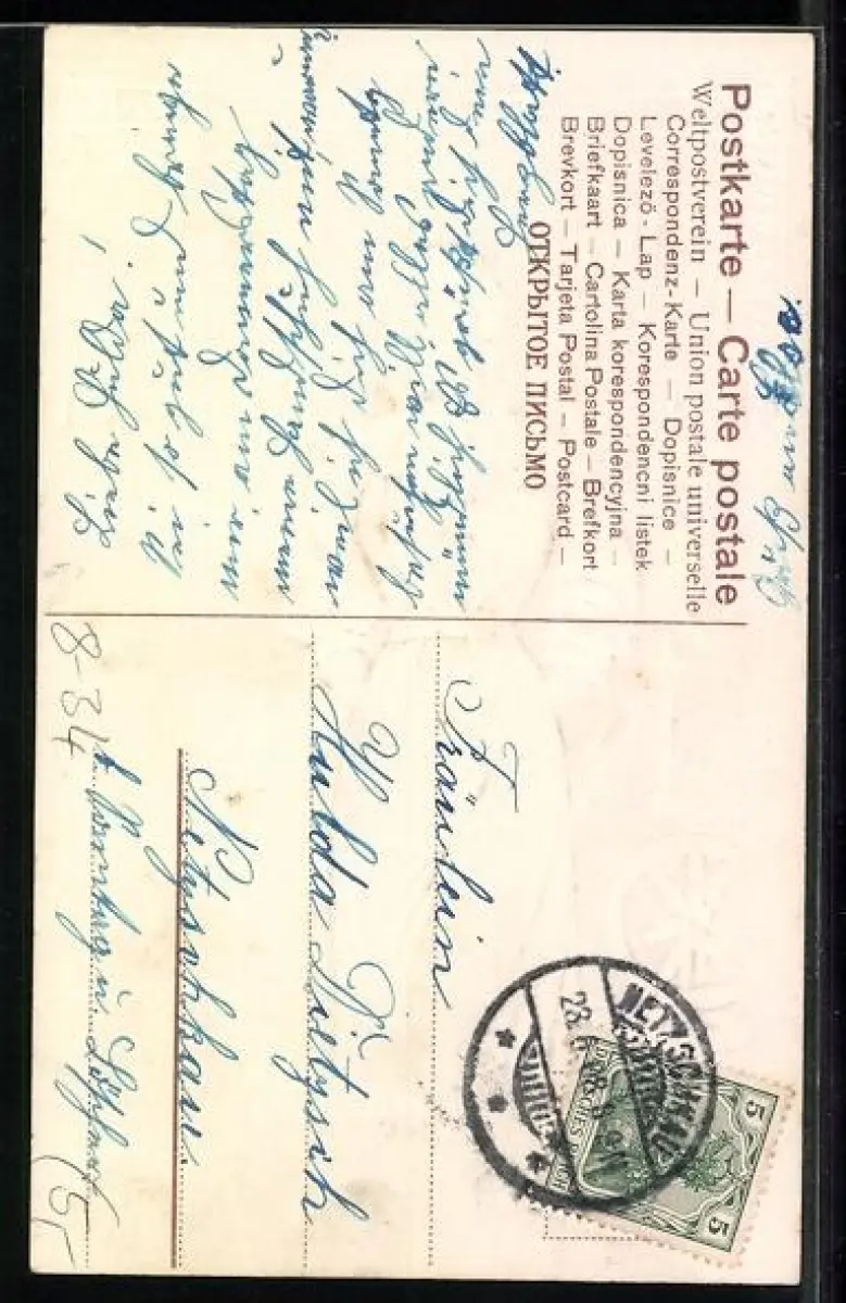 alte Ansichtskarte, gelaufen 1908, Stempelspur, guter Zustand