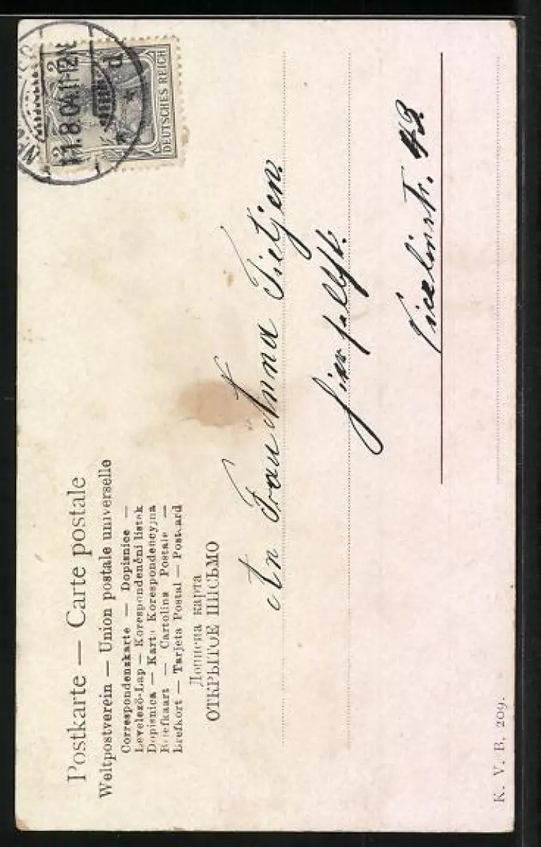 alte Ansichtskarte, gelaufen 1904, rückseitig Oberflächenschaden, guter Zustand