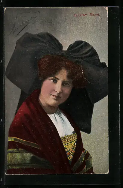AK Dame mit grosser dunkler Schleife in Elsässer Tracht