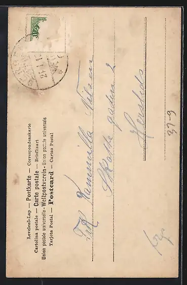 alte Ansichtskarte, gelaufen, Briefmarke entfernt, rückseitig Oberflächenschaden, guter Zustand