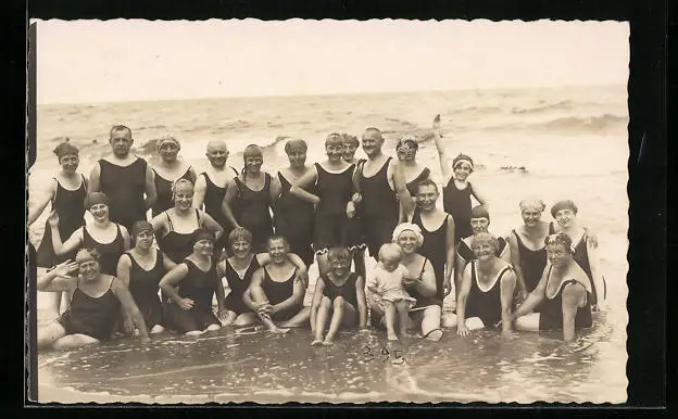 AK Damen, Herren und Kinder in Bademode am Strand abgelichtet