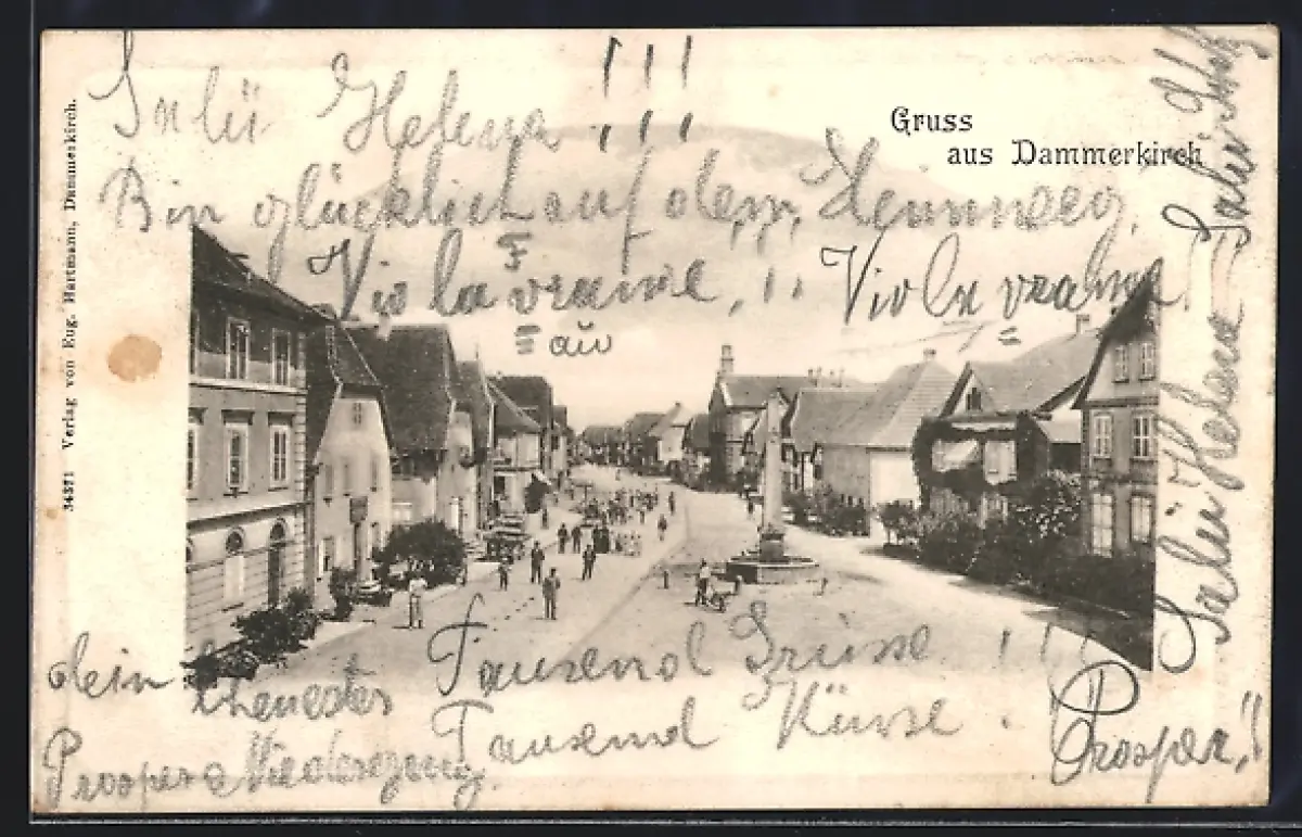 AK Dammerkirch, Vue de la rue principale animée avec maisons et passants
