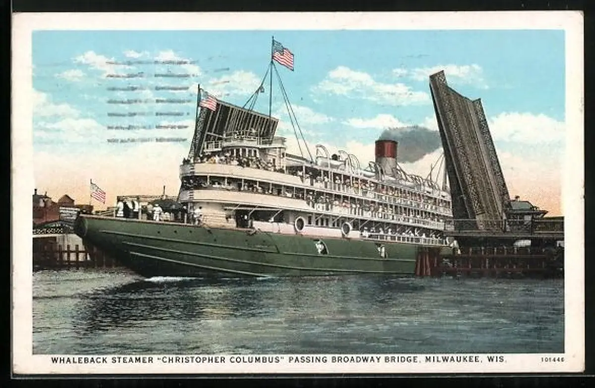 AK Dampfer Christopher Columbus passing Broadway Bridge
