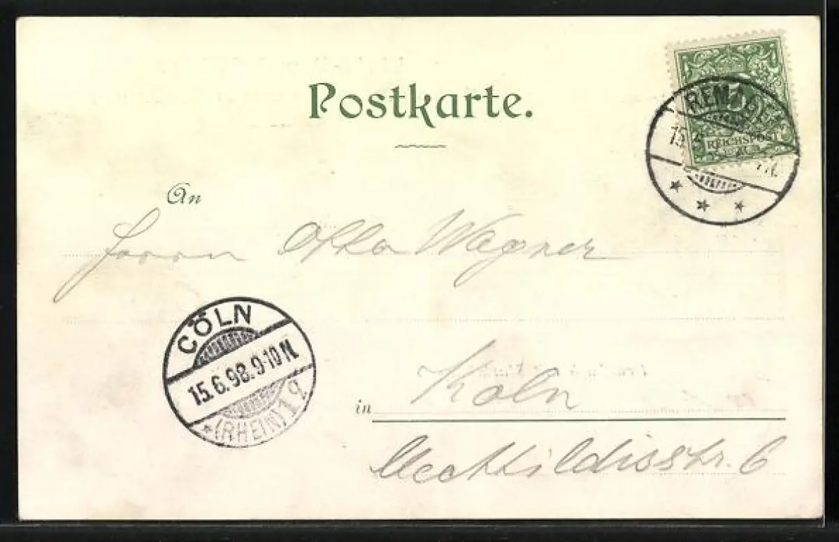 alte Ansichtskarte, gelaufen 1898, guter Zustand