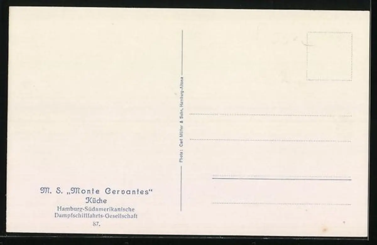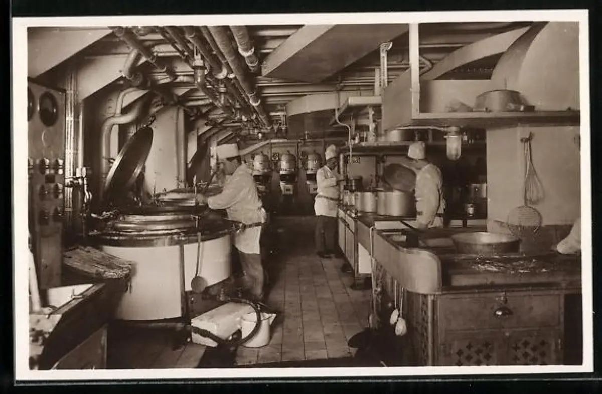 AK Dampfer M. S. Monte Cervantes der Hamburg-Süd, Küche, Hamburg-Südamerika Linie