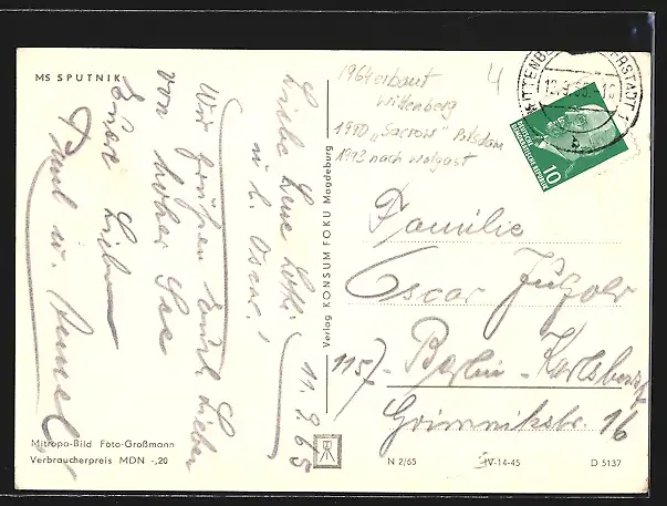 alte Ansichtskarte, gelaufen 1965, Eckknick re. unten, guter Zustand