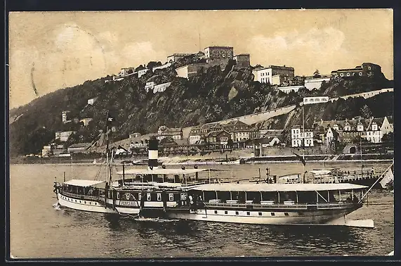 AK Dampfer Parsival auf dem Rhein vor Ehrenbreitstein