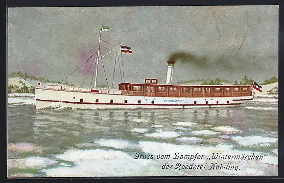 AK Dampfer Wintermärchen auf der Spree mit Eisschollen, Reederei Nobiling