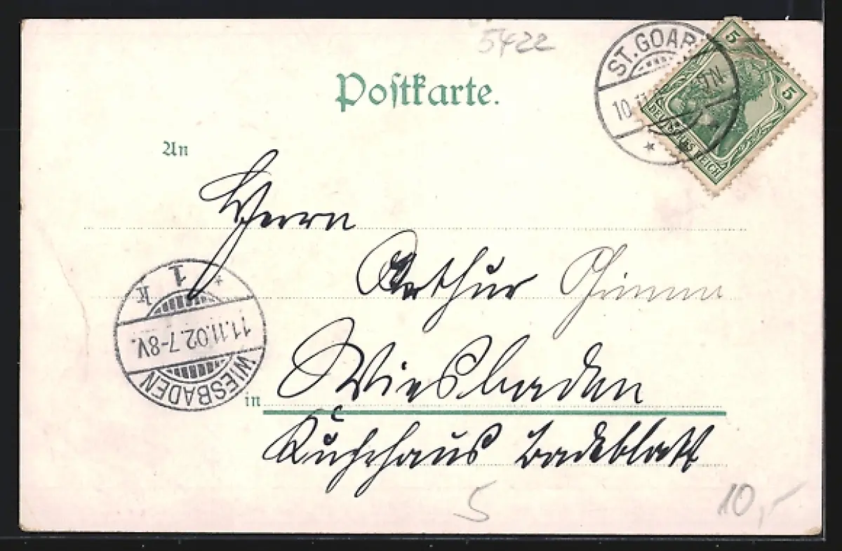gelaufen 1902, Eckknicke re., Stempelspur, guter Zustand