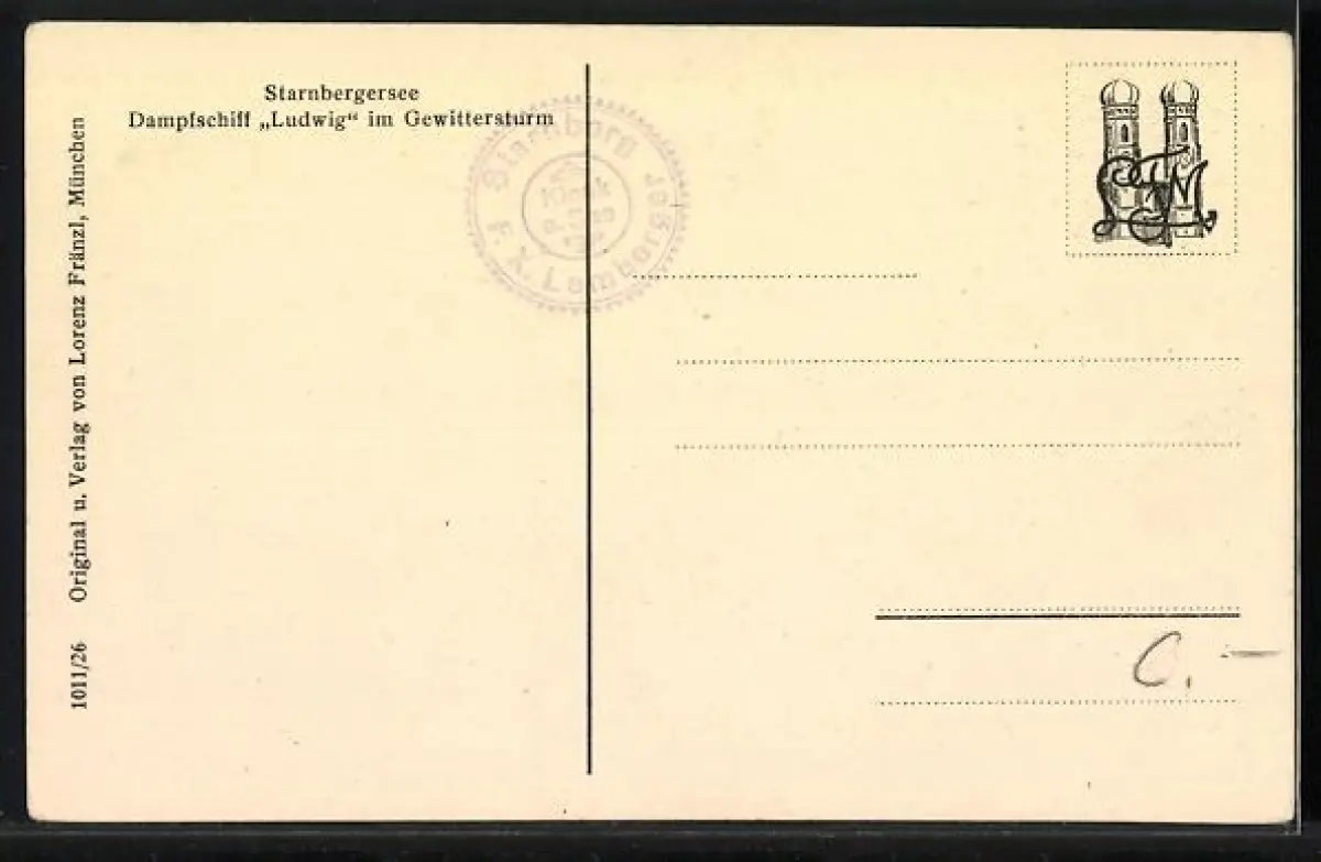 AK Dampfschiff Ludwig im Gewittersturm auf dem Starnberger See