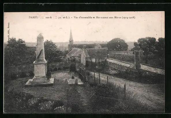 AK Dampierre-sur-Avre, Vue d'ensemble et Monument aux Morts 1914-1918