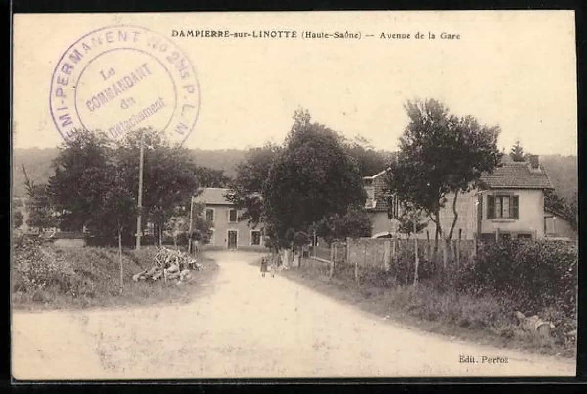 AK Dampierre-sur-Linotte /Haute-Saône, Avenue de la Gare avec maisons et arbres adjacents