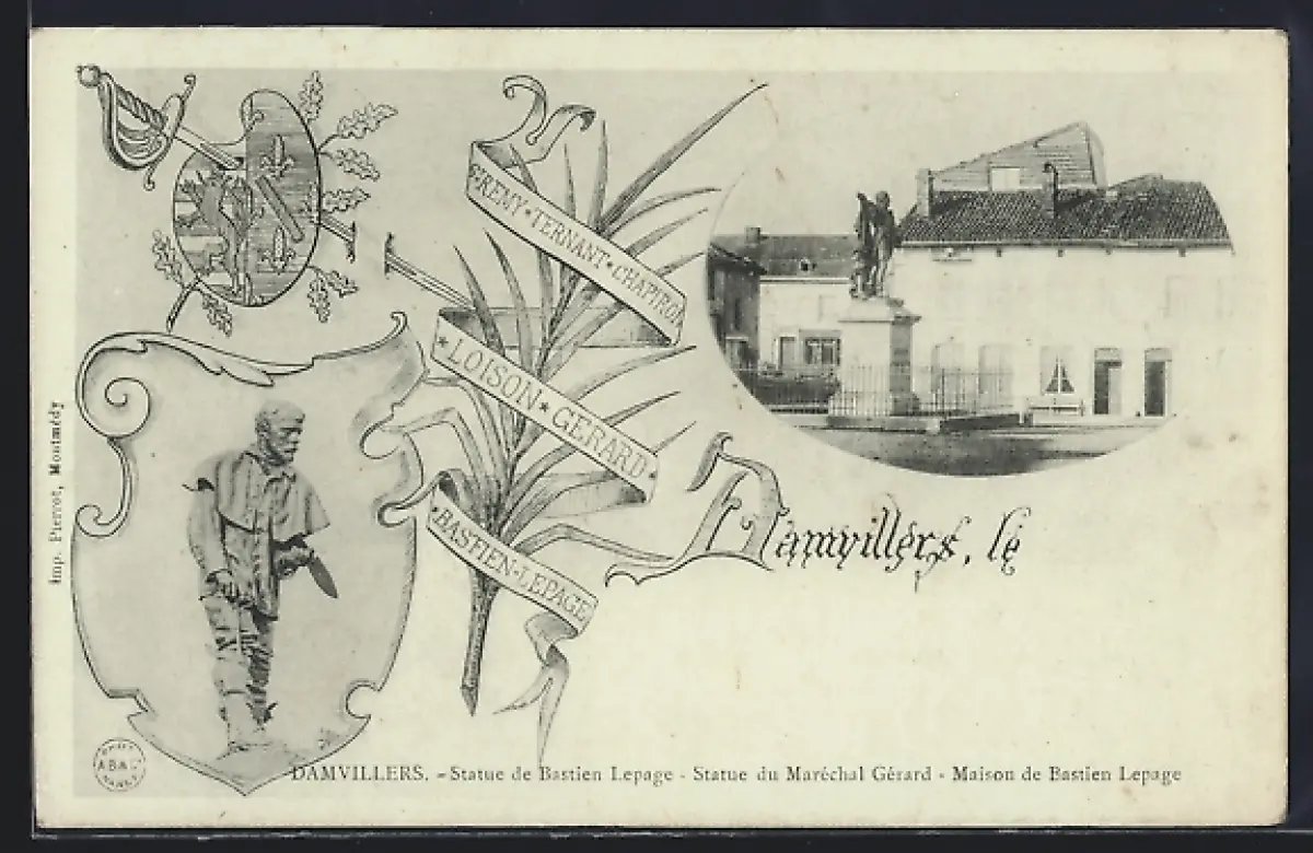 AK Damvillers, Statue de Bastien Lepage, Statue du Maréchal Gérard, Maison de Bastien Lepage