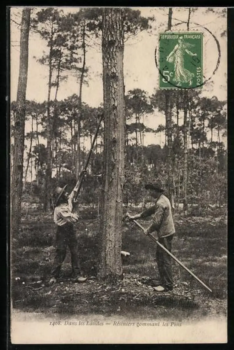 AK Dans les Landes, Résiniers gremmant les Pins, Harzer bei der Arbeit