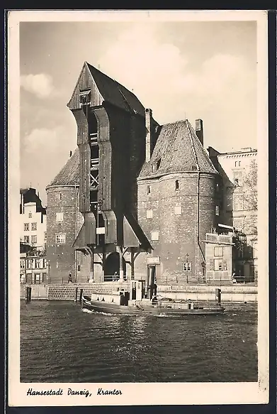 AK Danzig / Gdansk, Blick zum Krantor, Dampfer