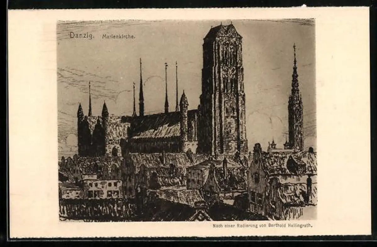 AK Danzig / Gdansk, Marienkirche zwischen den Häusern