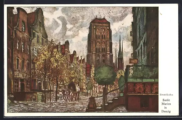 AK Danzig / Gdansk, Partie an der St. Marienkirche