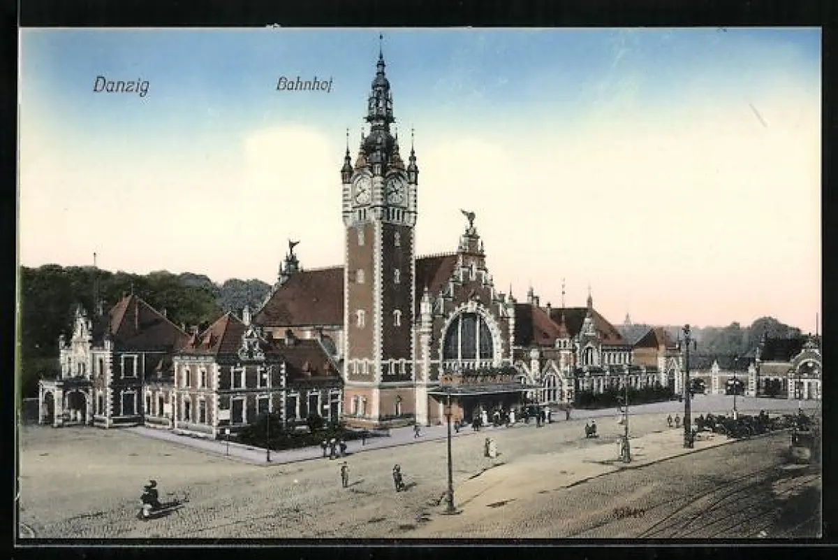 AK Danzig / Gdansk, Stadtpartie am Bahnhof