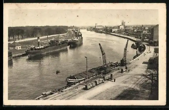 AK Danzig, Neufahrwasser, Hafeneinfahr aus der Vogelschau