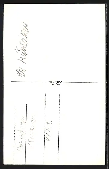 Personenbezogene Daten auf der Rückseite der Karte wurden durch blauen Textmarker unkenntlich gemacht. Die blauen Stellen sind auf die Vorderseite durchgeweicht und wirken sich negativ auf das Postkartenfoto aus