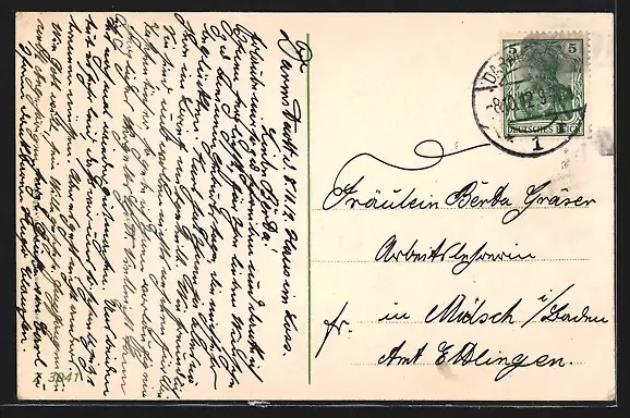 gelaufen 1912, Eckknick li. unten, guter Zustand