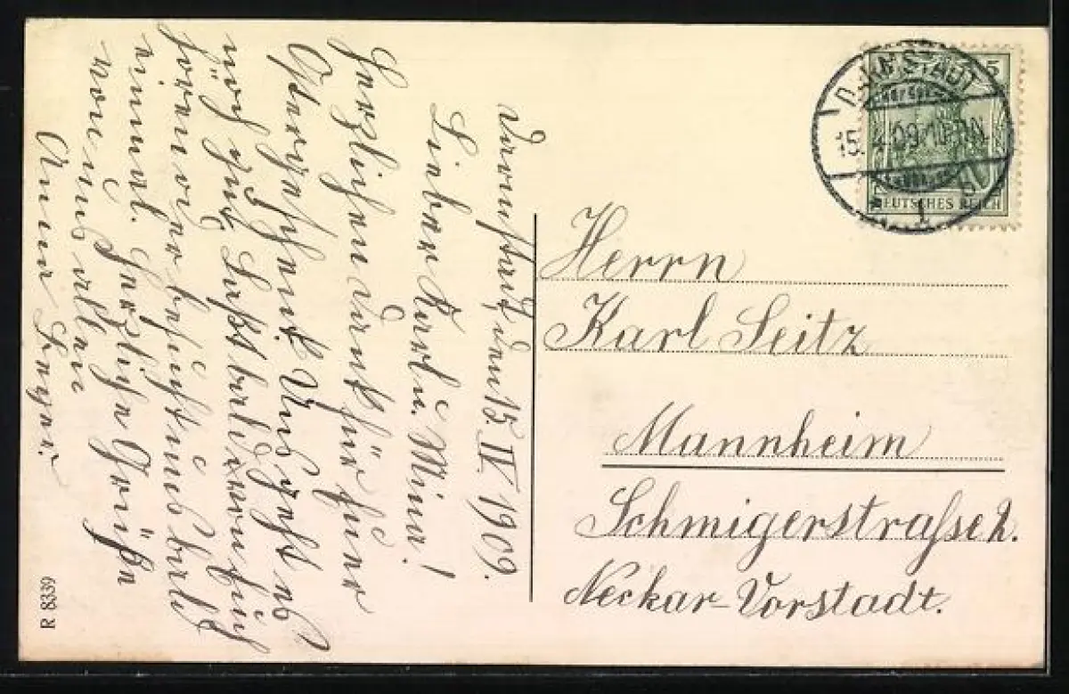 alte Ansichtskarte, gelaufen 1909, Stempelspur, guter Zustand