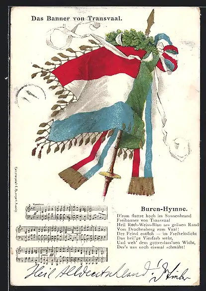 AK Das Banner von Transvaal, Burne-Hymne in Text- und Notenzeilen
