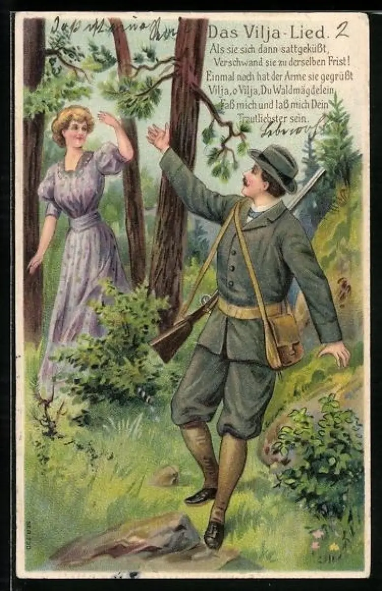 AK Das Vilja Lied, Jäger verabschiedet sich von seiner Geliebten zur Jagd