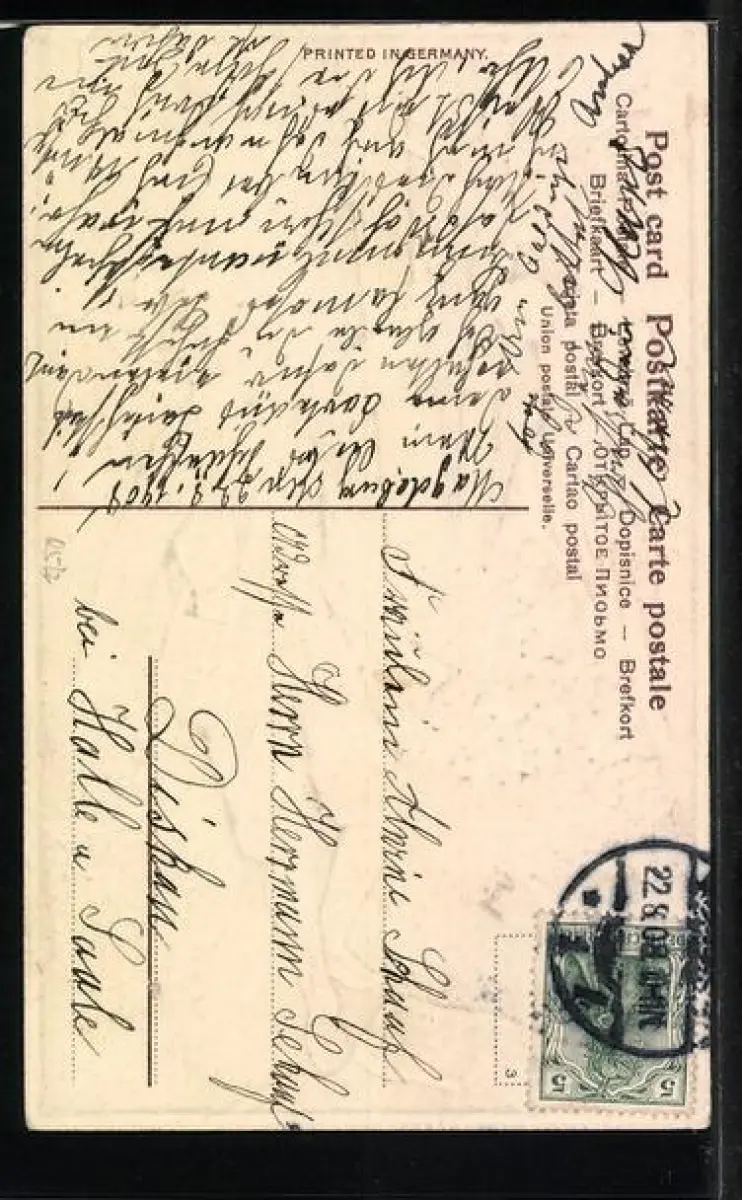 alte Ansichtskarte, gelaufen 1908, Stempelspur, guter Zustand
