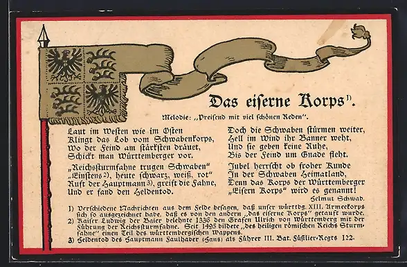 AK Das eiserne Korps, Lied, Flagge