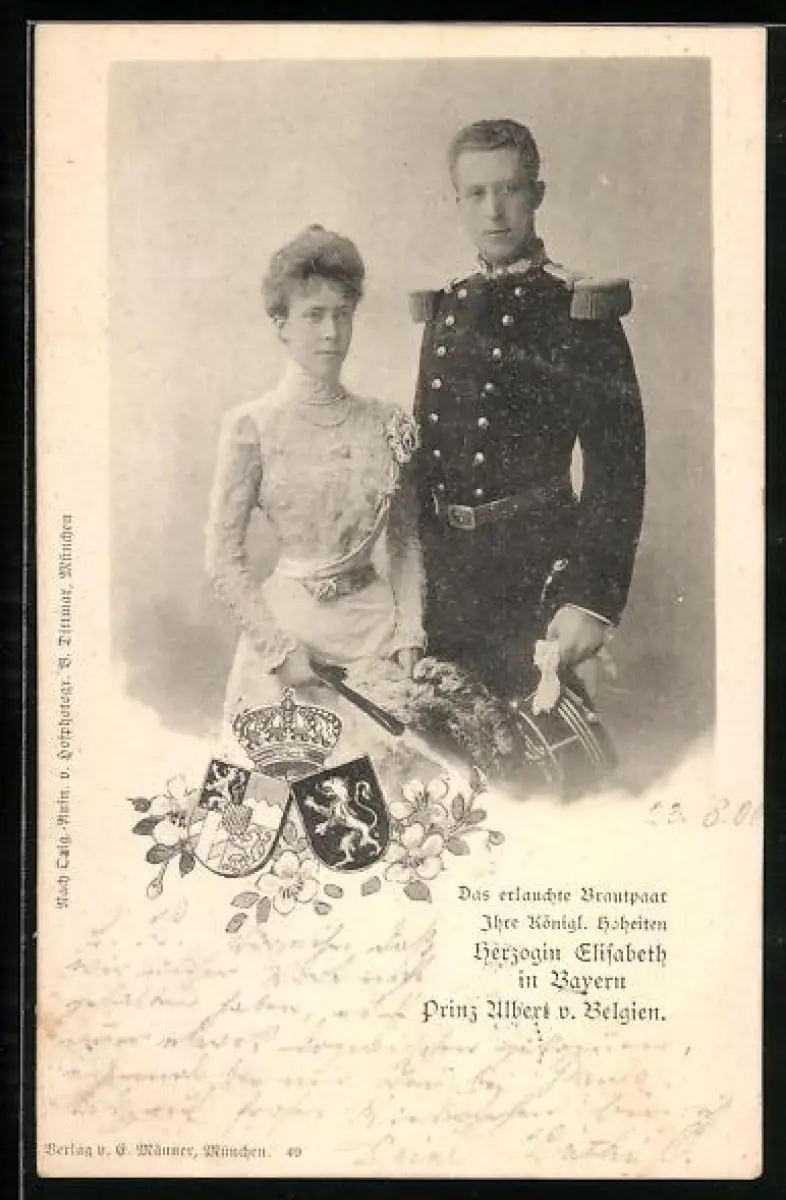 AK Das erlauchte Brautpaar Ihre Königl. Hoheiten Herzogin Elisabeth in Bayern und Prinz Albert von Belgien