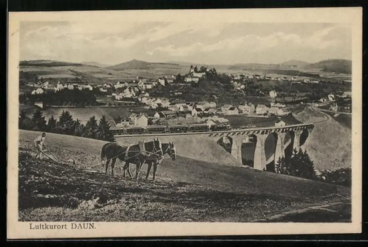 AK Daun, Viadukt, Ortsansicht, Landwirtschaft