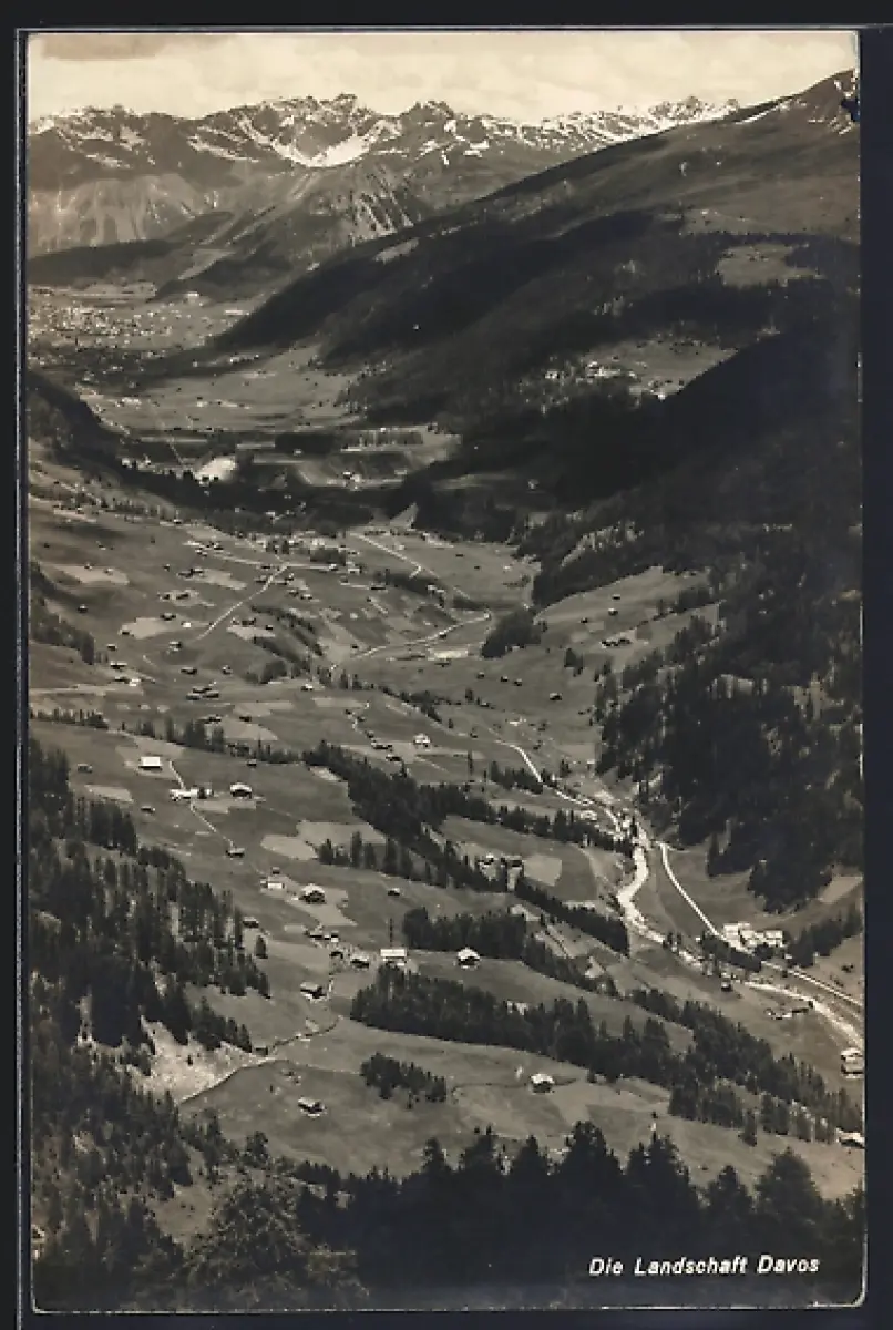 AK Davos, Ansicht der Landschaft aus der Vogelschau
