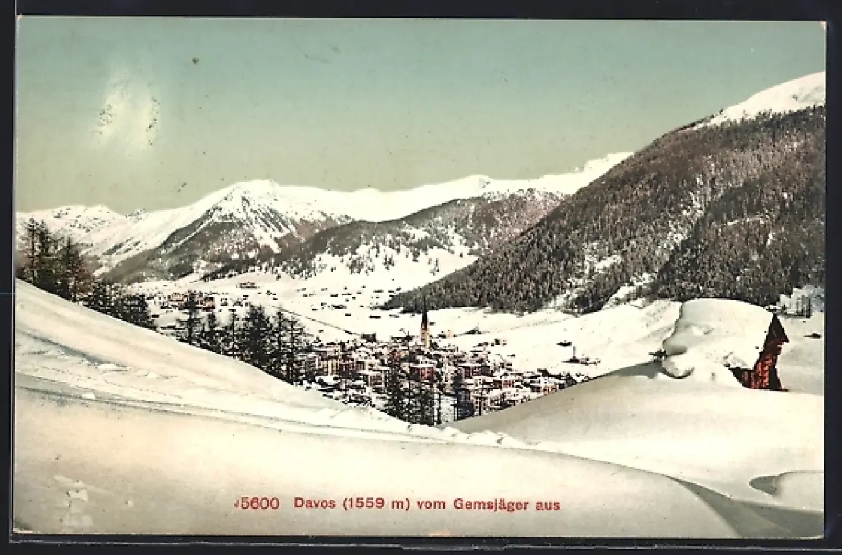 AK Davos, Gesamtansicht im Schnee vom Gemsjäger aus