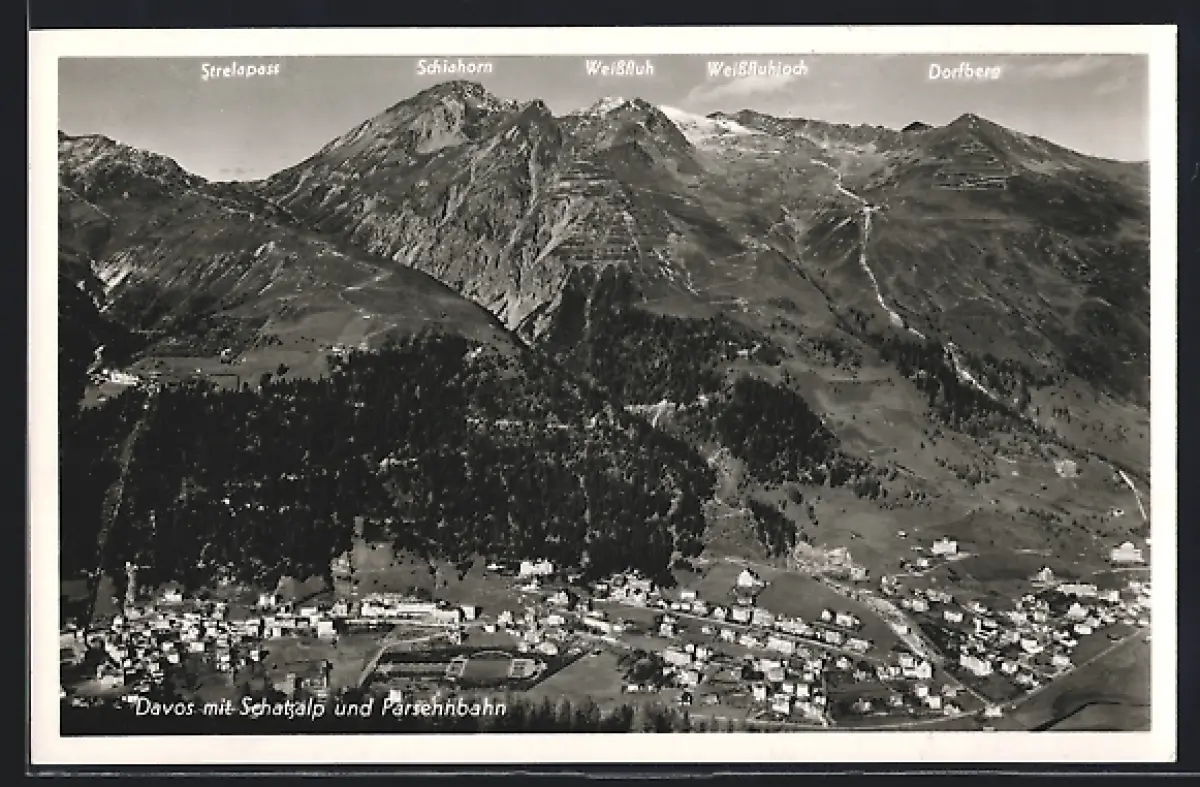 AK Davos, Gesamtansicht mit Schatzalp und Parsennbahn