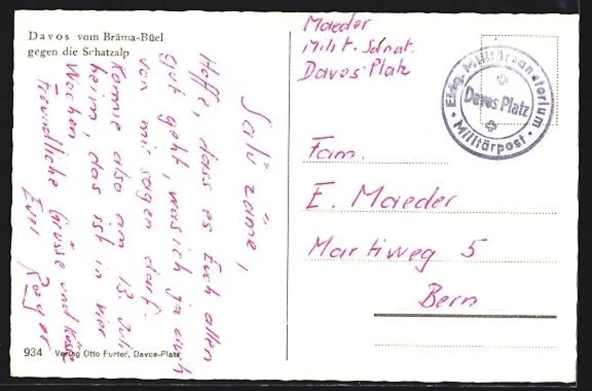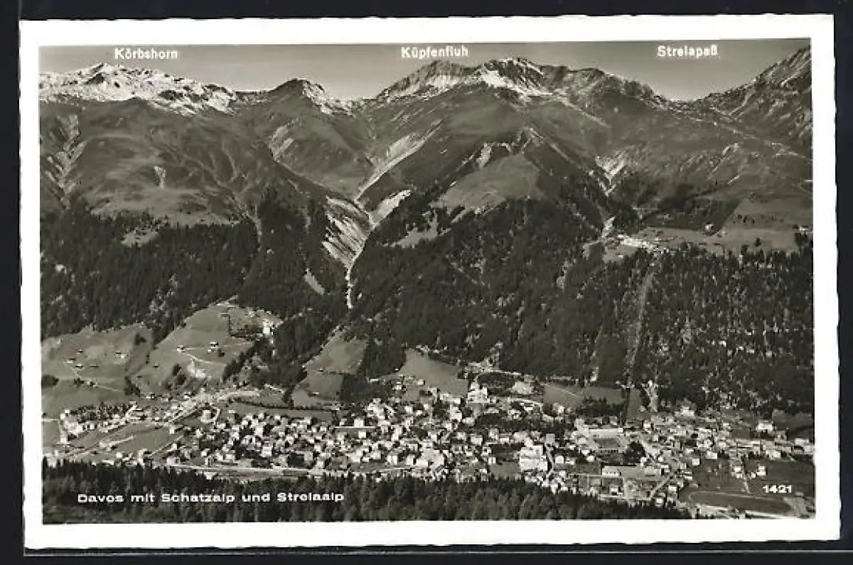 AK Davos, Ortsansicht mit Schatzalp und Stelaalp