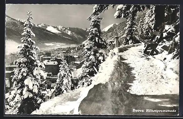 AK Davos, Ortsansicht von der verschneiten Höhenpromenade