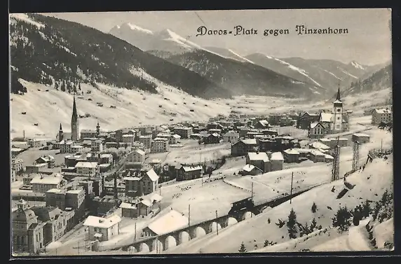 AK Davos-Platz, Ortsansicht im Schnee gegen das Tinzenhorn