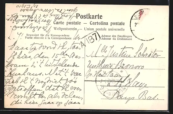 alte Ansichtskarte, gelaufen, Briefmarke entfernt, rückseitig Oberflächenschaden, guter Zustand