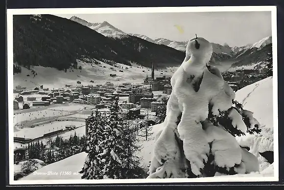 AK Davos-Platz, Ortsansicht vom verschneiten Berghang aus