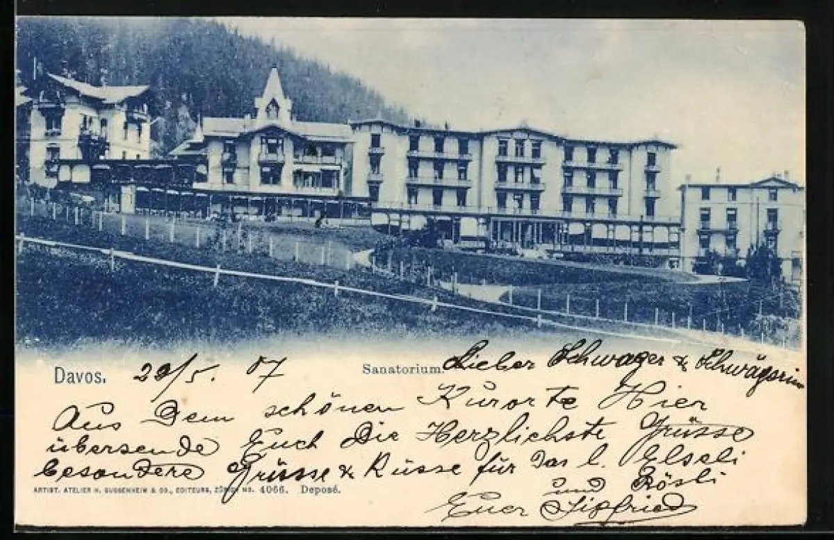 AK Davos, Sanatorium mit Anlagen, Panorama