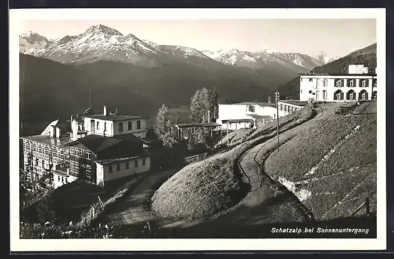 AK Davos, Schatzalp, Totalansicht bei Sonnenuntergang