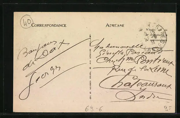 Personenbezogene Daten auf der Rückseite der Karte wurden durch blauen Textmarker unkenntlich gemacht. Die blauen Stellen sind auf die Vorderseite durchgeweicht und wirken sich negativ auf das Postkartenfoto aus