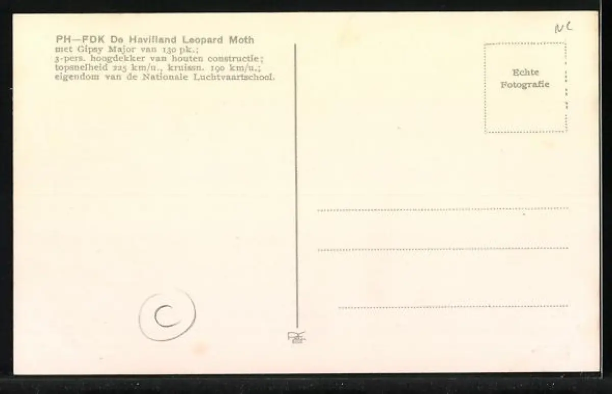 AK De Havilland Leopard Moth Flugzeug mit Kennung PH-FDK und 130-PS Motor