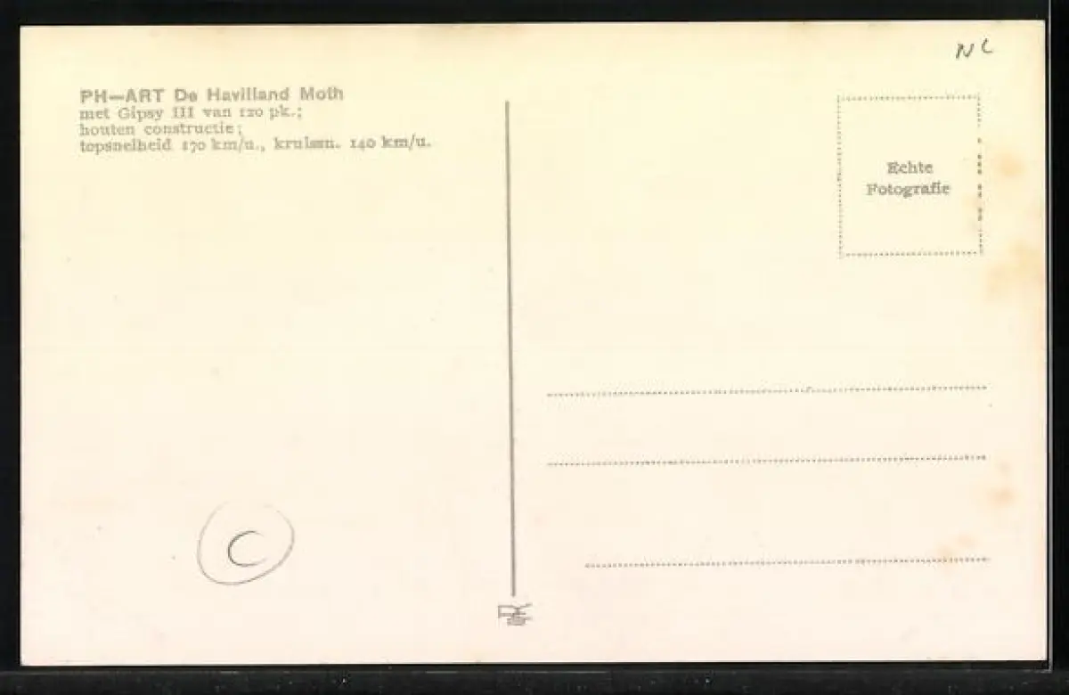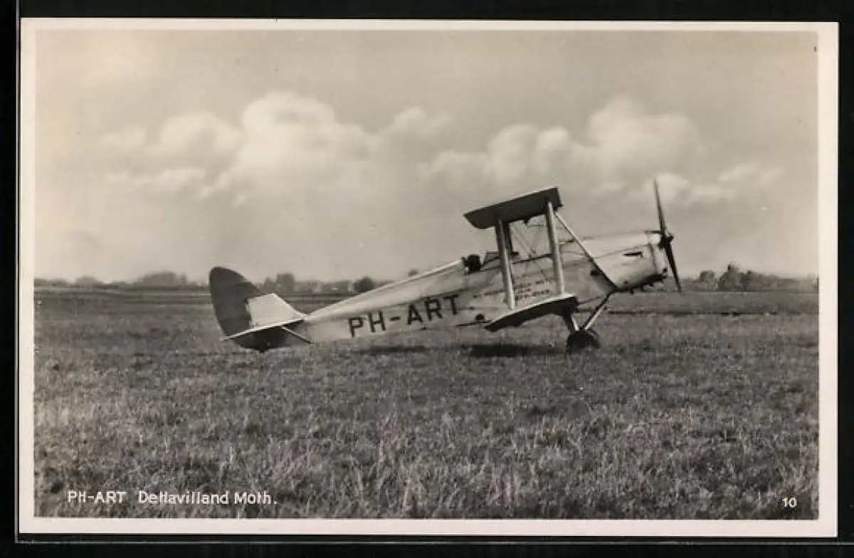 AK De Havilland Moth Doppeldecker-Flugzeug mit Gipsy III-Motor von 120 PS