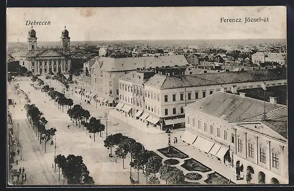 AK Debrecen / Debreczin, Franz Josef-Strasse mit Kirche